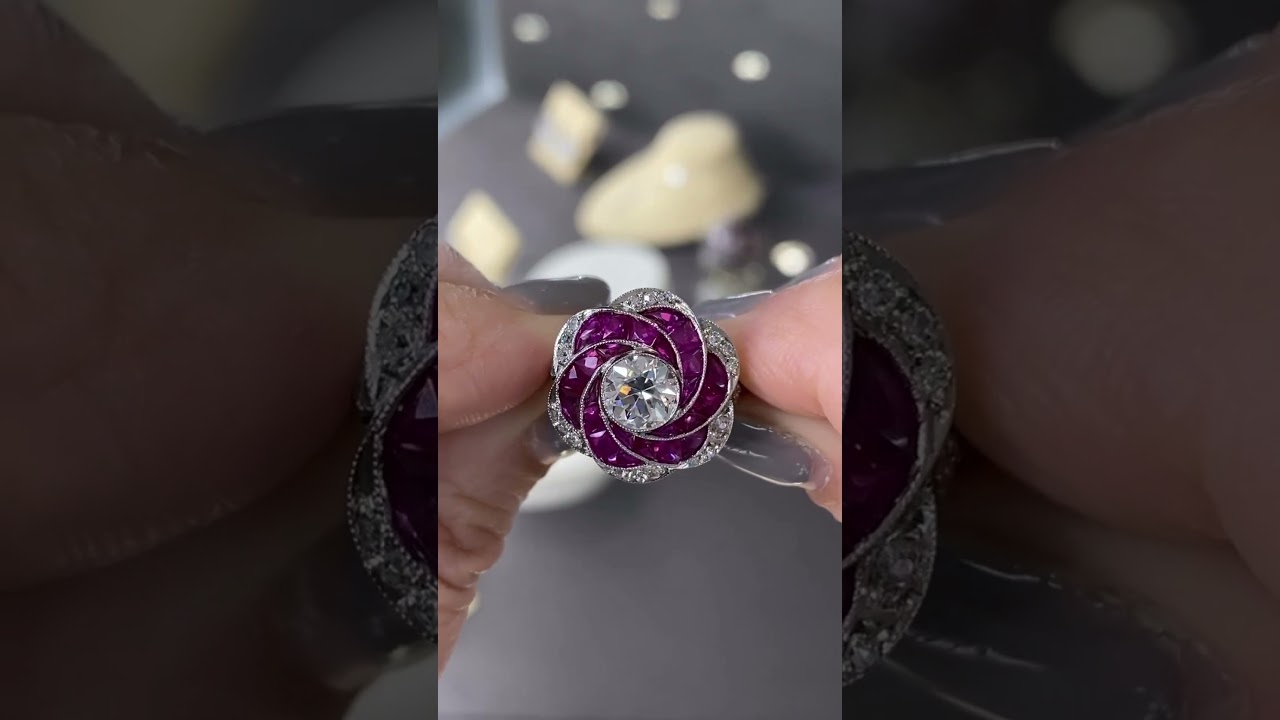 1.5ct Round Cut White Sapphire Ruby Rose Flower Spiral Cocktail Engagement Ring