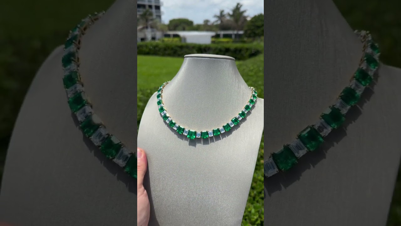 105ctw Emerald Cut White Sapphire & Emerald Green Handmade Luxury Necklace