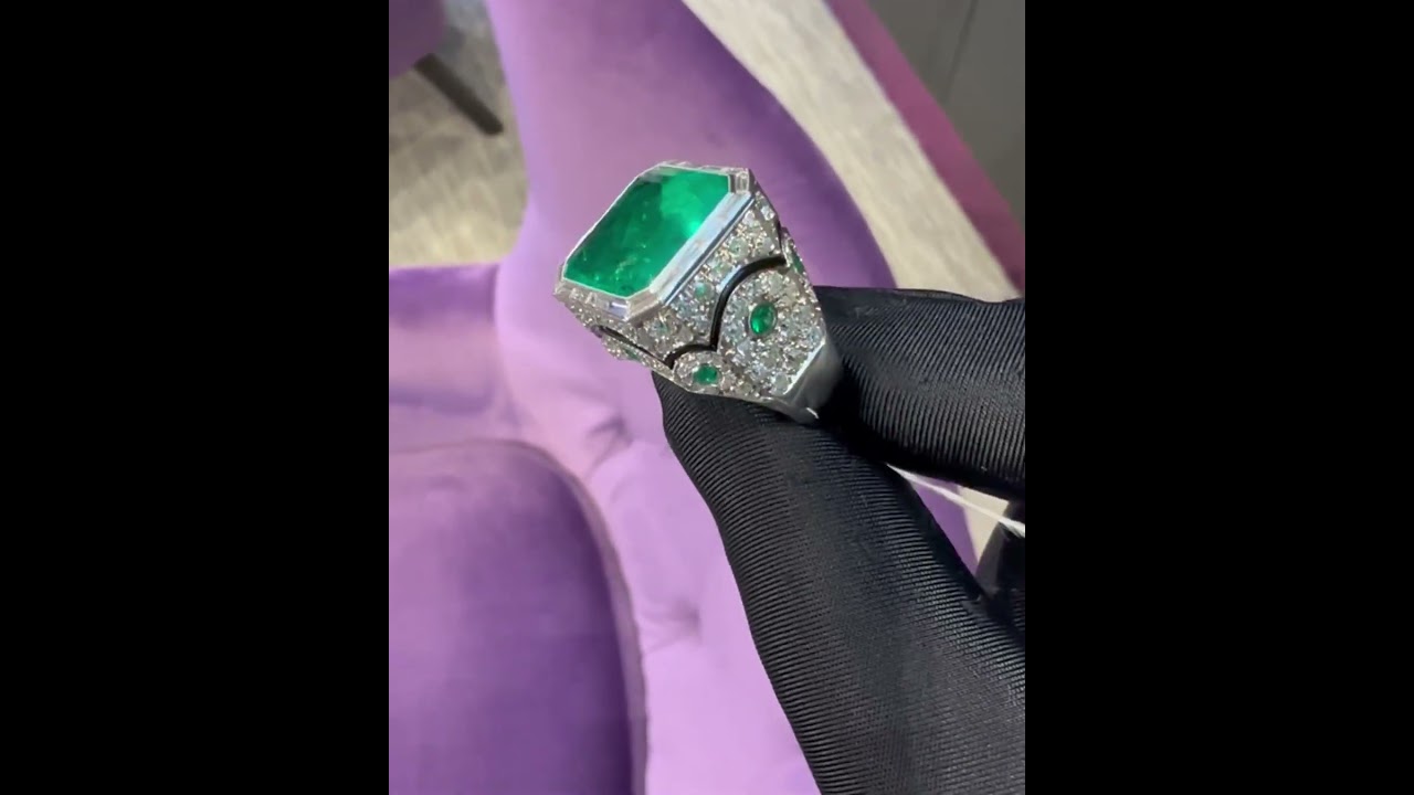 12.7 Carats Men's Certified Colombian Emerald And Diamond Ring
