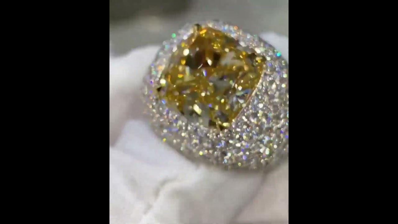 15.36ct Cushion Cut Fancy Yellow Sapphire Pave Handmade Men's Ring