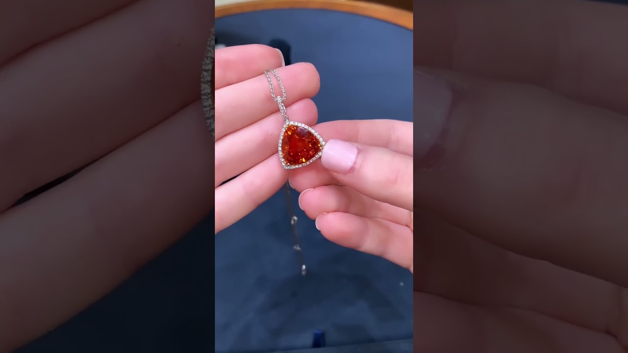 15ct Trillion Cut Garnet Halo Pendant Necklace