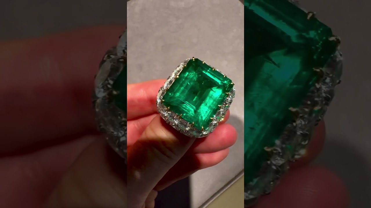 16ct Emerald Cut Vivid Green Emerald Double Halo Vintage Handmade Ring