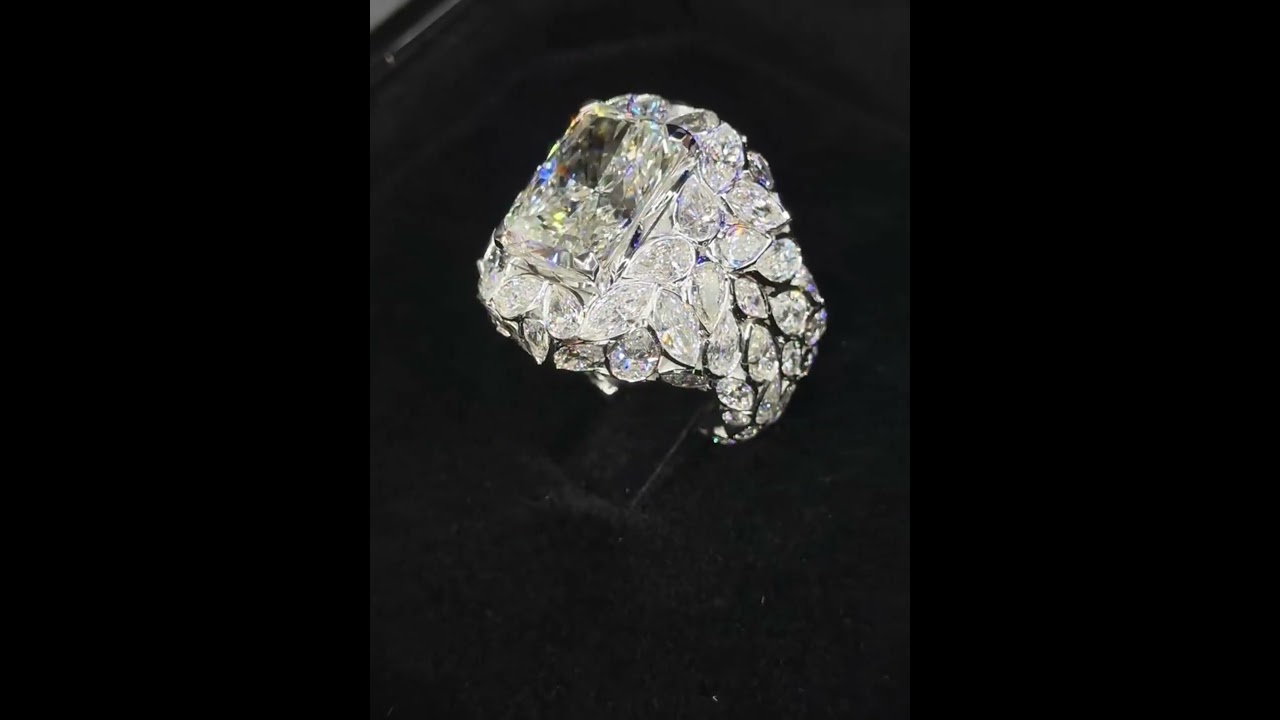 18ct Radiant Cut White Sapphire With Pear & Marquise Cut Setting Handmade Sterling Silver Men's Ring