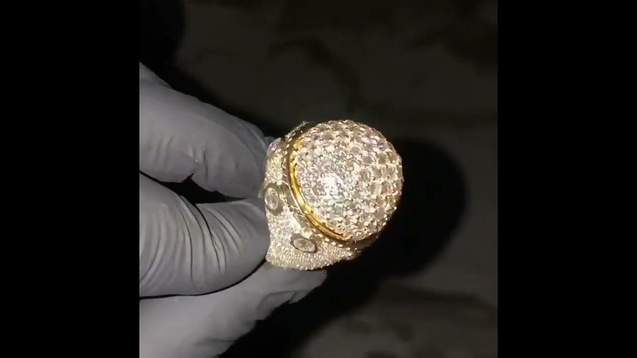 18ct Round Cut Diamond Inlaid Luxury Sterling Silver Plated Yellow Gold Handmade Men's Ring