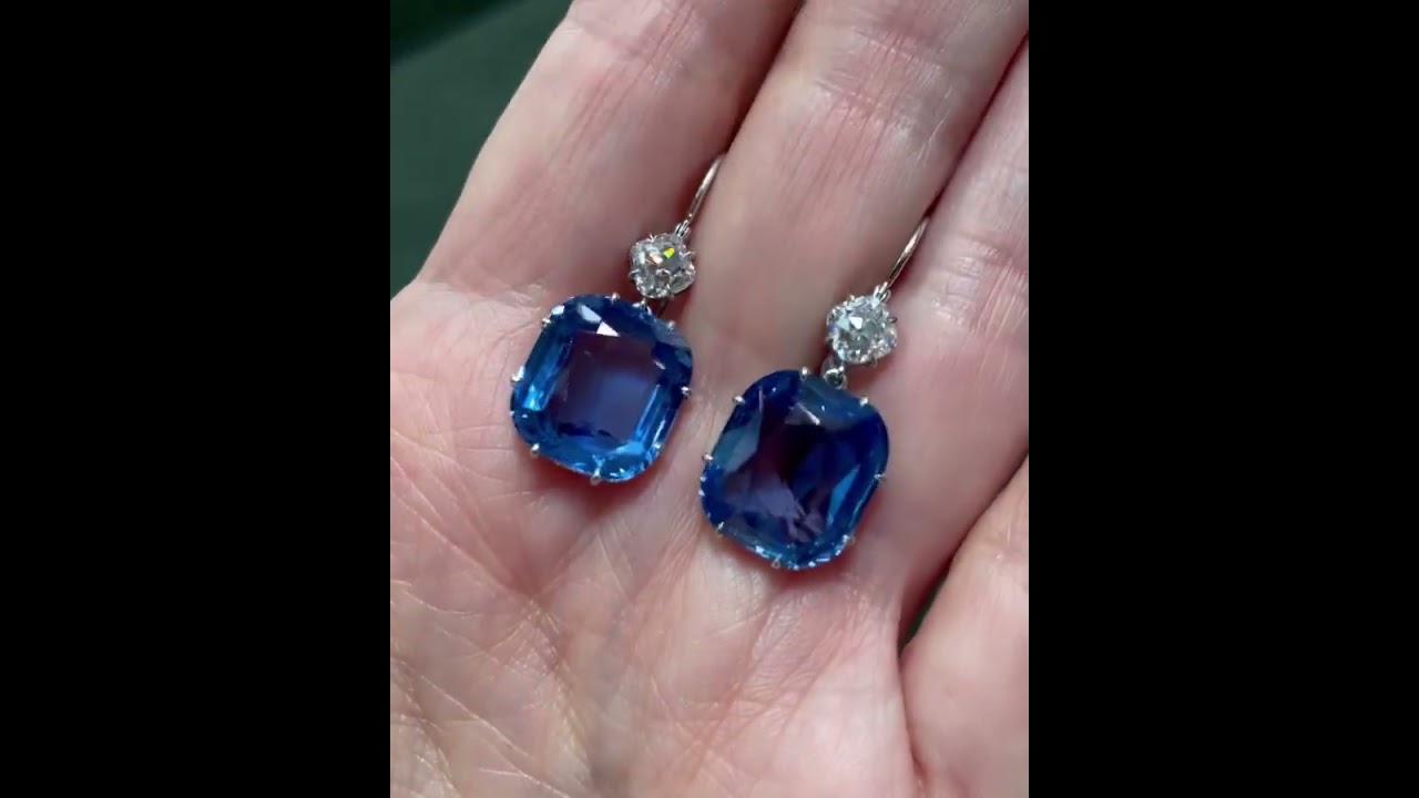 21.6CT Dreamy Natural Cushion Cut Sapphire Earrings