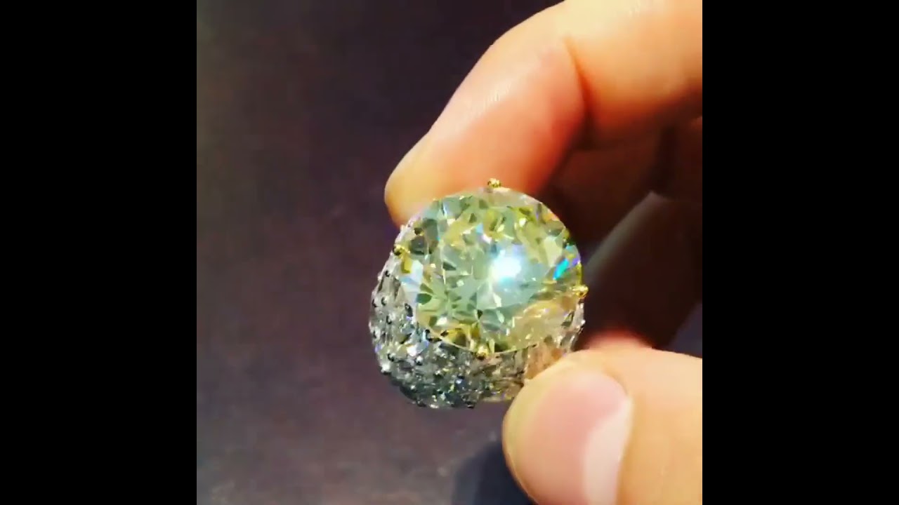 22.8ct Round Cut Fancy Yellow Sapphire With Paved Pear White Sapphires Handmade Ring