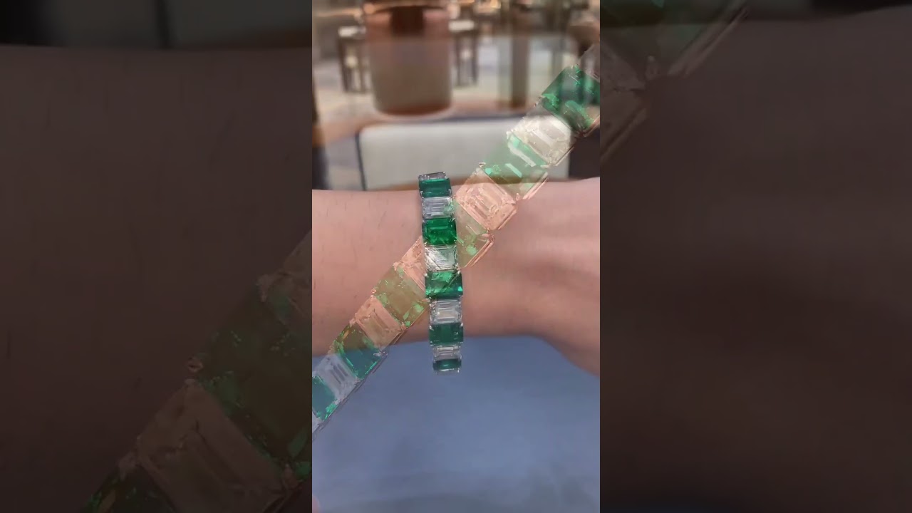 25ctw Emerald Cut Emerald Green & White Sapphire Handmade Bracelet