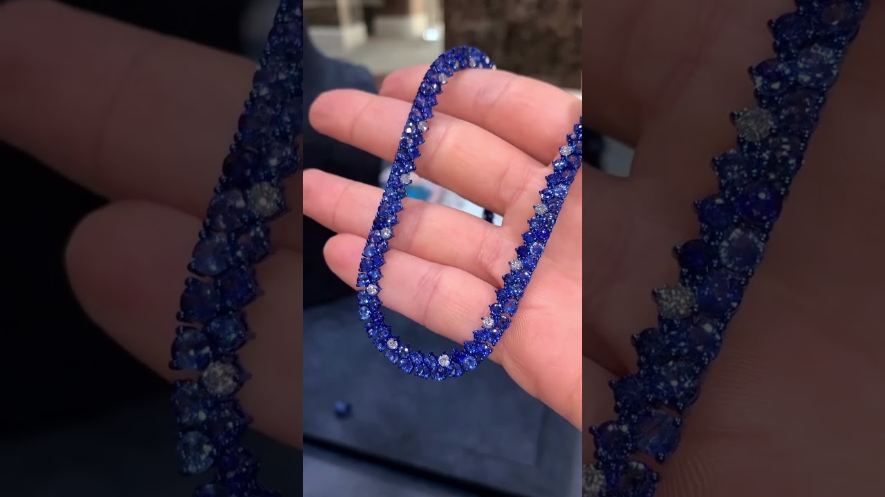 25ctw Round Cut Blue & White Sapphire Classic Handmade Necklace