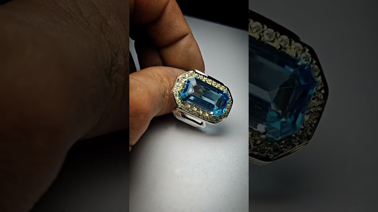 26ct Cushion Cut Sapphire Sterling Silver Handmade Luxury Men's Ring