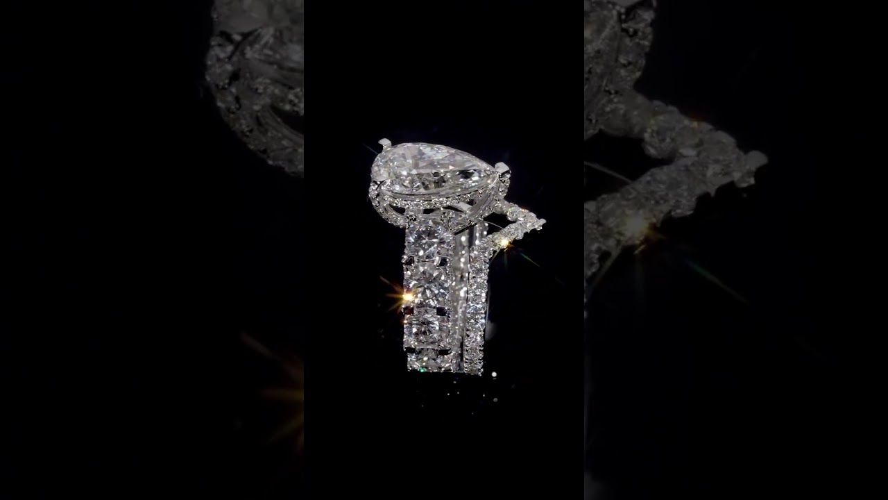 2ct Under Halo Pear Shape Stackalbe Rings/2pcs