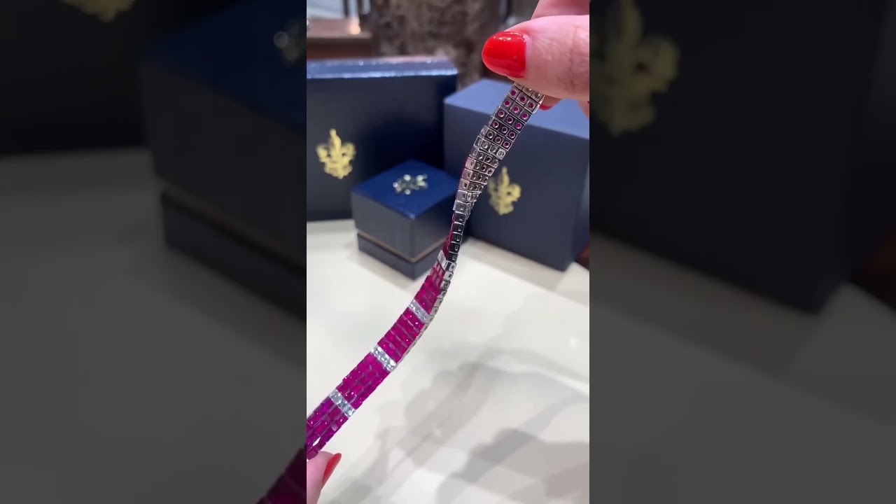 31.37ctw Princess Cut Ruby & White Sapphire Handmade Bracelet