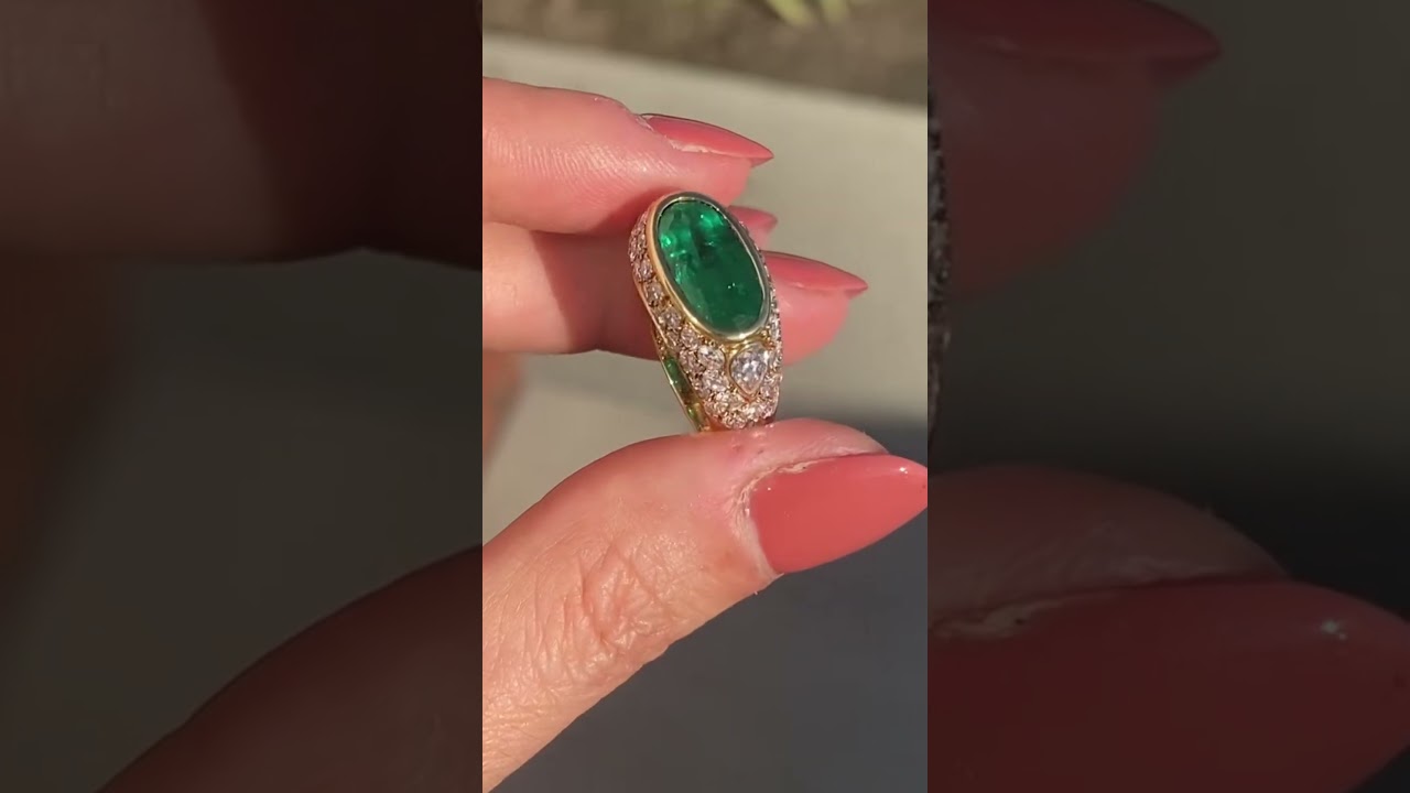 3ct Oval-cut Emerald Sterling Silver Handmade Ring Plated With Yellow Gold