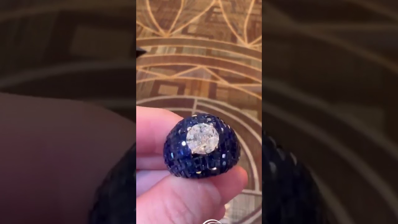 3ct Invisibile Setting Round Cut Blue Sapphire Cocktail Ring
