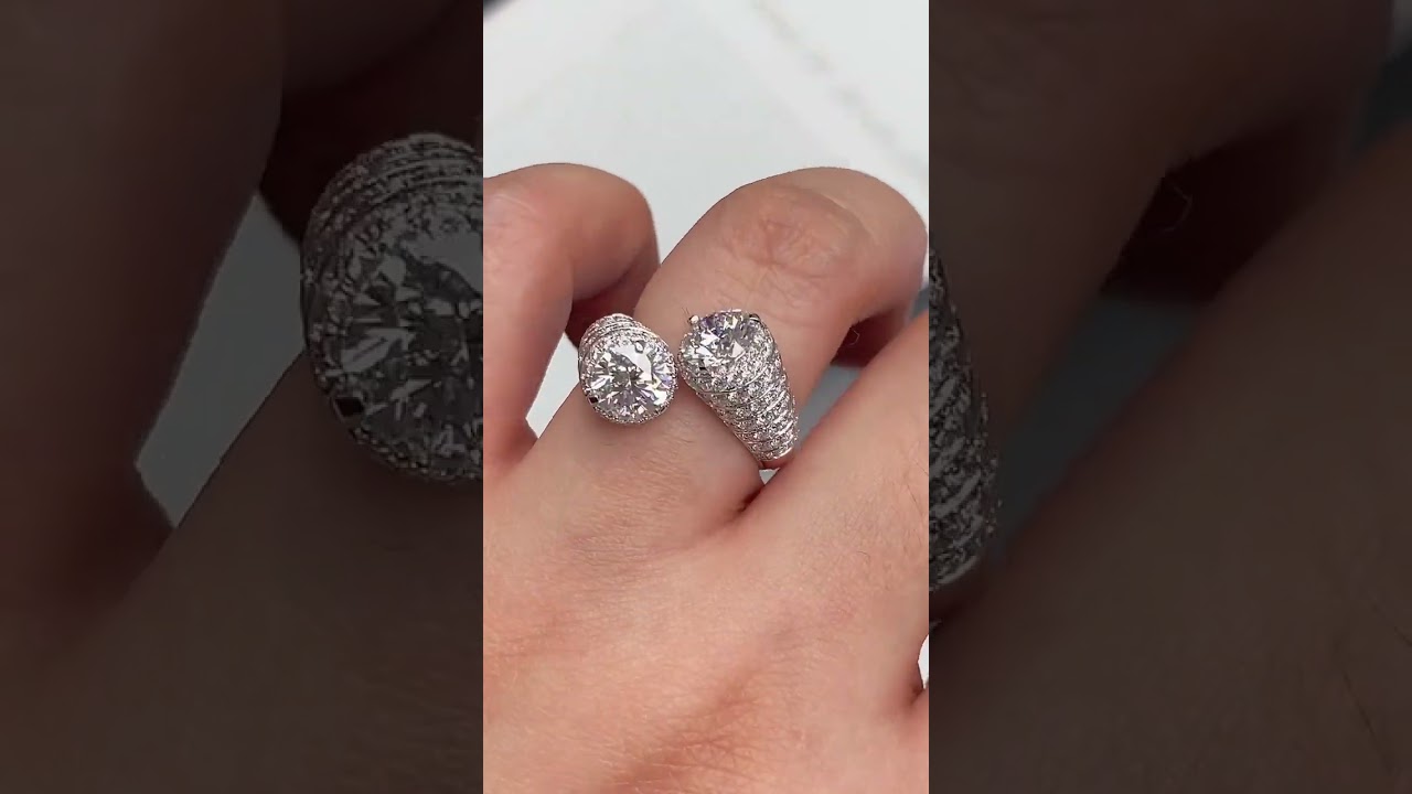4.0CT White Gold Ring With Two Round Diamonds And Pave Diamonds