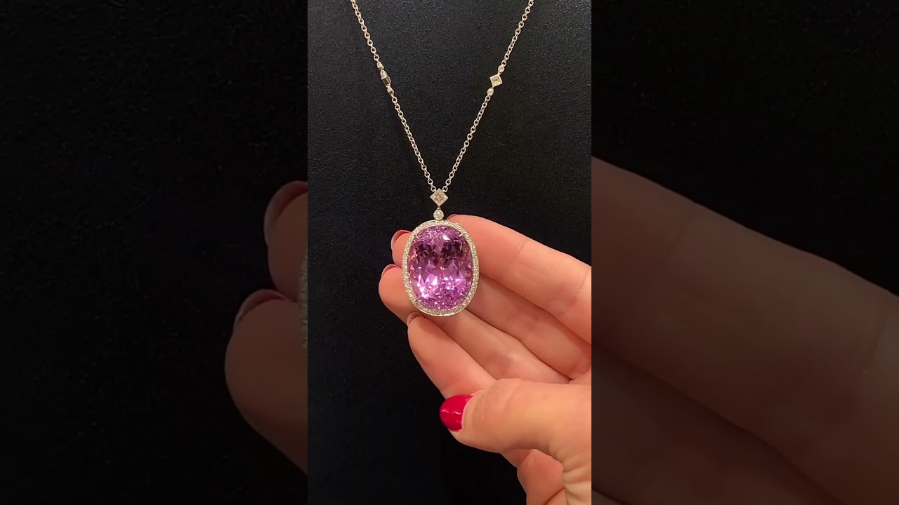 40ct Oval Cut Pink Sapphire Halo Pendant Necklace
