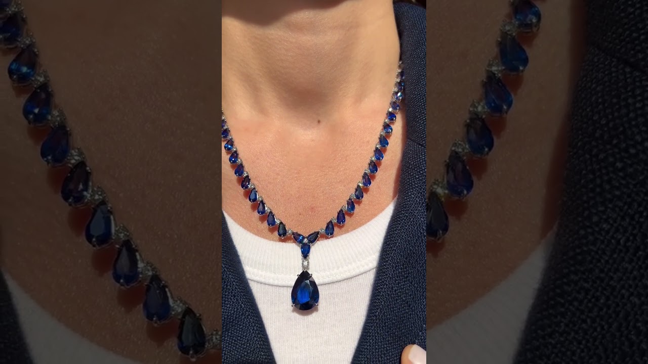 46ctw Pear Cut Royal Blue Sapphire Handmade Pendant Necklace