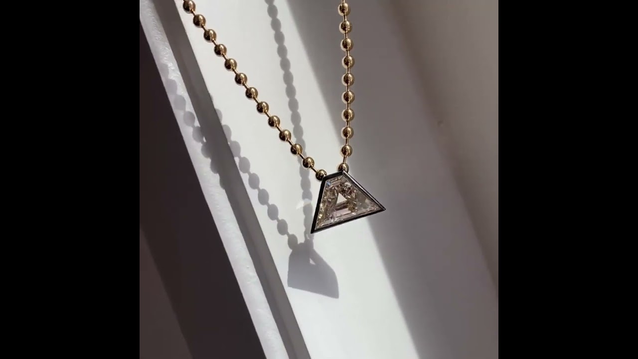 4ct Pyramid Shape White Sapphire Ball Chain Handmade Sterling Silver Necklace In Yellow Gold