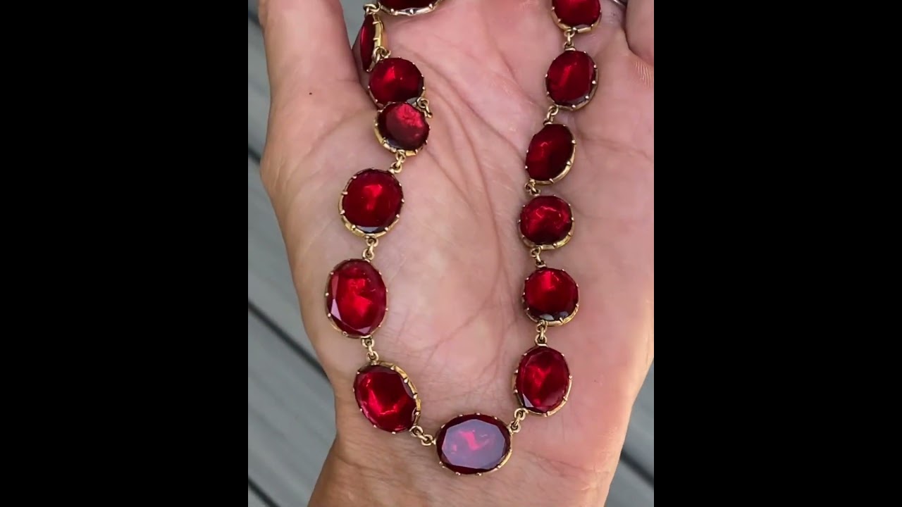 59ctw Oval Cut Ruby Handmade Yellow Gold Rivière Necklace