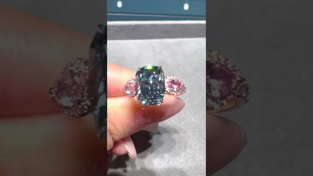 6.0ct Rose Gold Radiant Cut Blue And Triangle Cut Pink Three Gemstone Sterling Silver Ring
