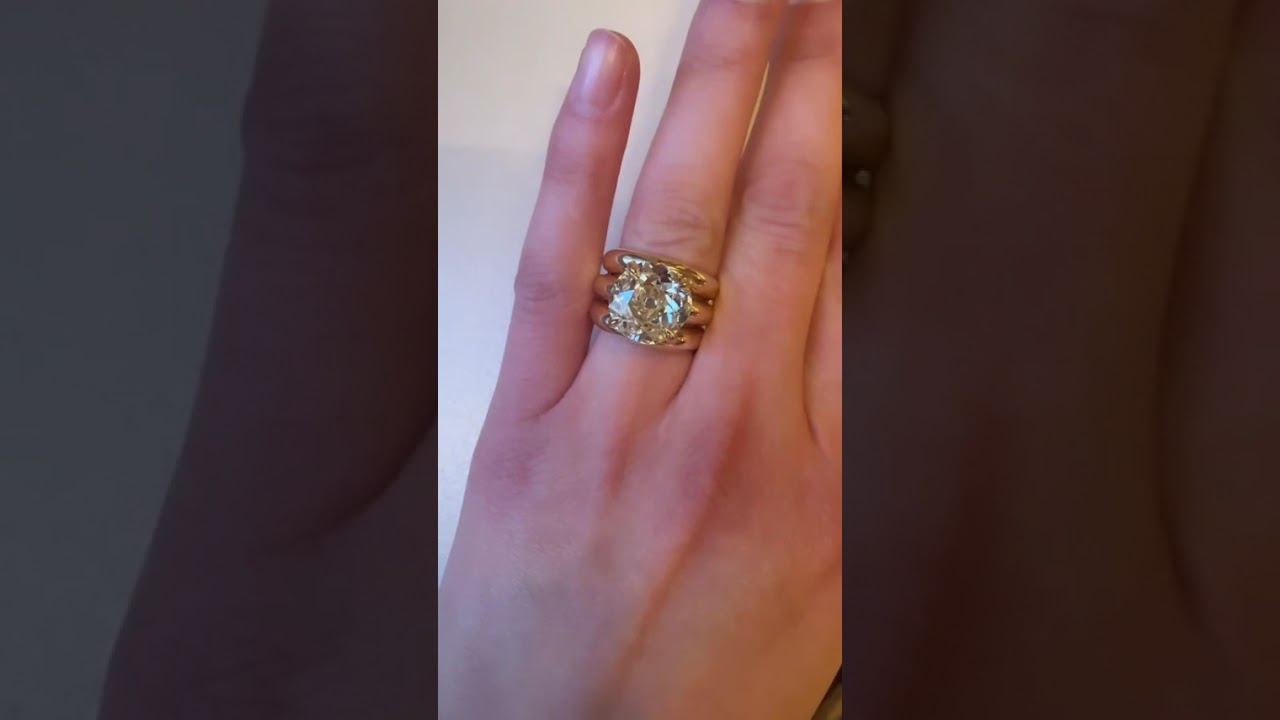 6.05ctw Old Mine Cut Yellow Stone Ring