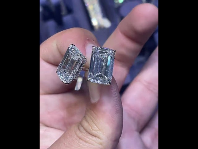 6ct Emerald Cut White Sapphire Halo Handmade Men's Stud
