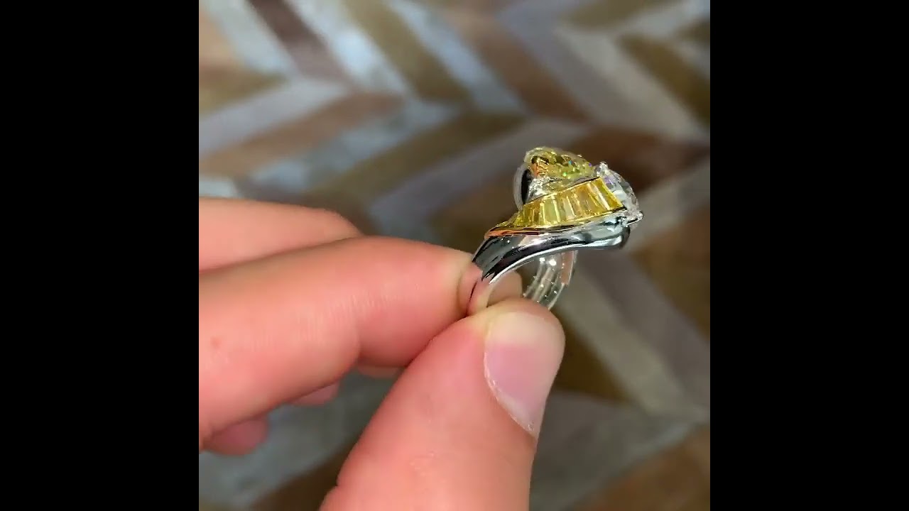 6ct Pear Cut White And Yellow Sapphire Double Stone Engagment Ring
