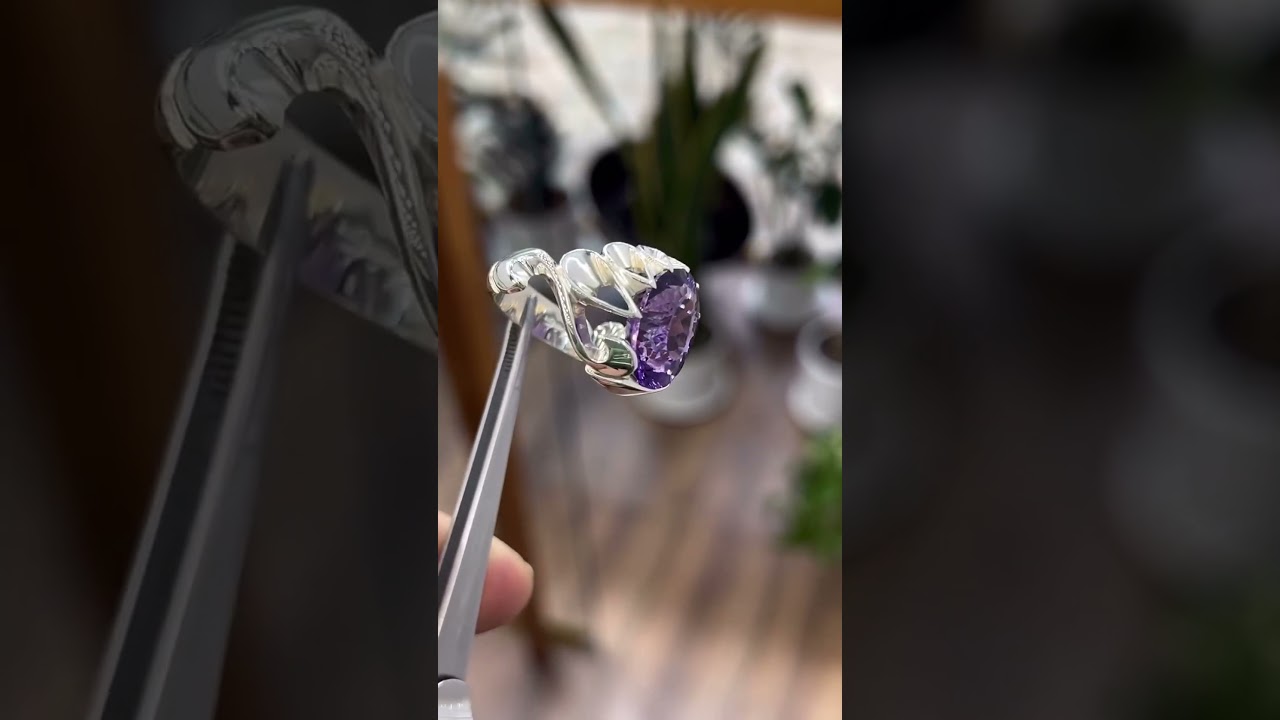 6ctw Oval Cut Amethyst Sterling Silver Handmade Men's Ring