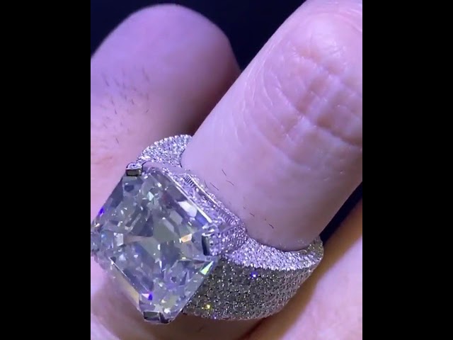 7ct Asscher Cut White Sapphire Full Pave Set Handmade Ring