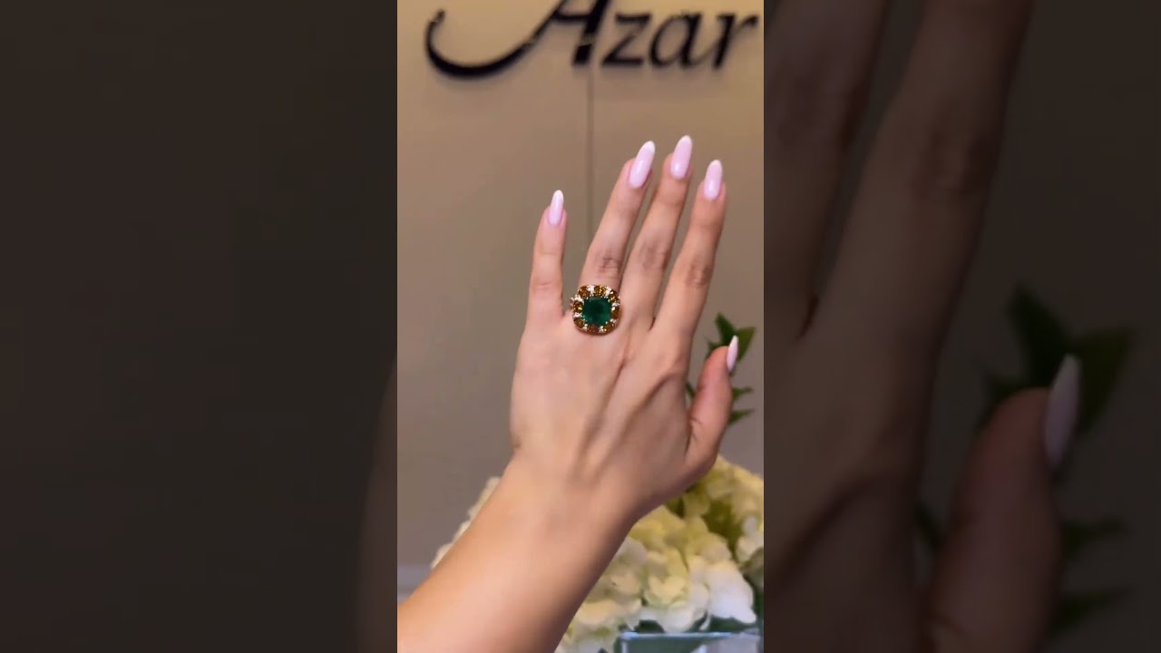 7ct Emerald Ring With Yellow Stone Halo