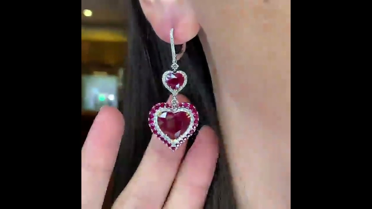 9ct Heart Cut Ruby Paved Earrings