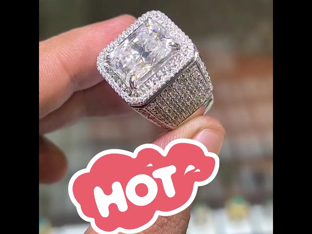 12ct Radiant Cut White Sapphire Pave Set Handmade Men's Ring