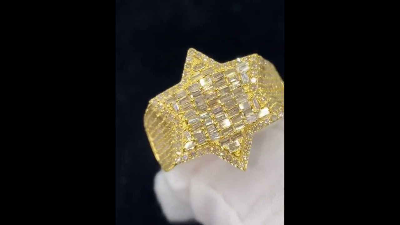 26ctw Cushion Cut Diamond Luxury Six-pointed Star Shape Sterling Silver Plated Gold Handmade Ring