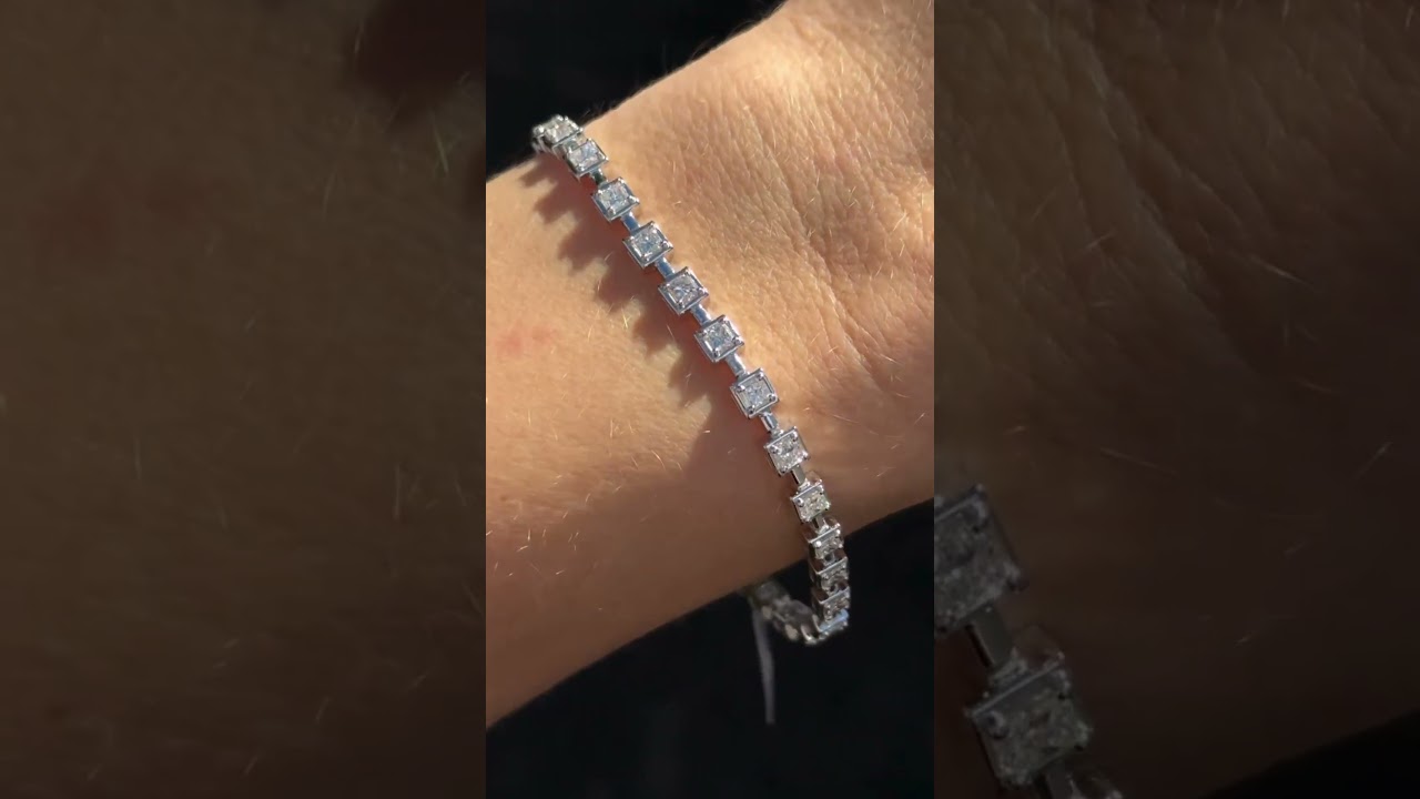 4ct Round-cut Square Frame Sterling Silver Handmade Bracelet