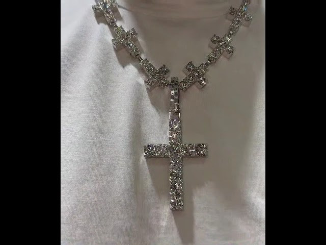 50ctw Round Cut White Sapphire Handmade Men's Cross Necklace