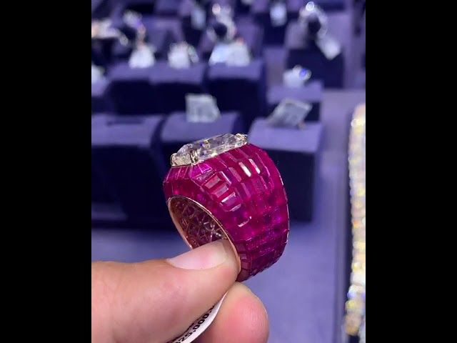 12ct Radiant Cut White Sapphire With Invisible Rubies Setting Super Man Handmade Men's Ring