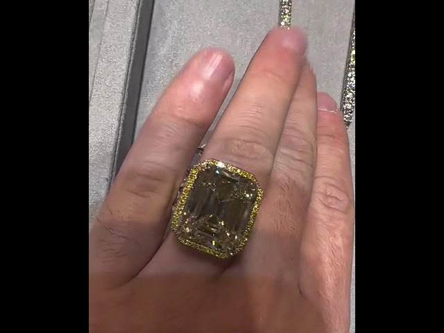 15ct Emerald Cut White Sapphire With Yellow Sapphires Halo Split Shank Handmade Men's Ring