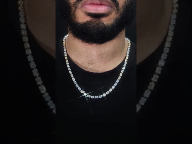 1ct Each Baguette Cut White Sapphire Handmade Men's Chain Necklace