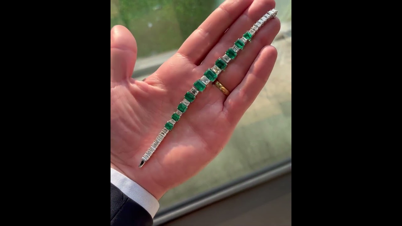 20ct Cushion Cut Emerald Sterling Silver Handmade Bracelet