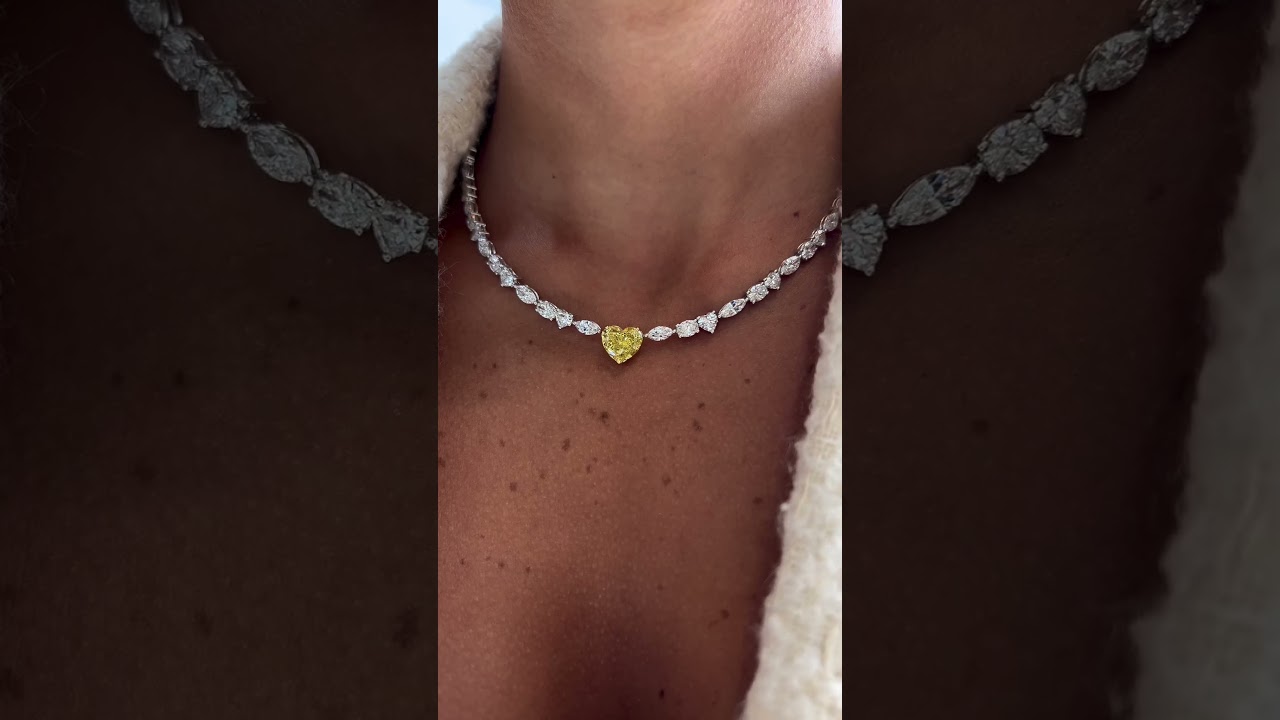 3.64CT Fancy Intense Yellow Diamond And Diamond Collar Necklace