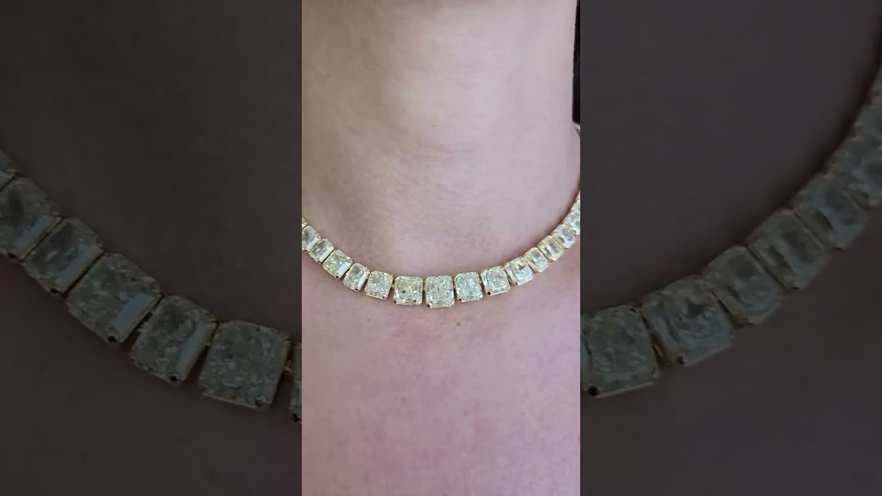 30ct Princess Cut Zircon Handmade Sterling Silver Plated Yellow Gold Necklace