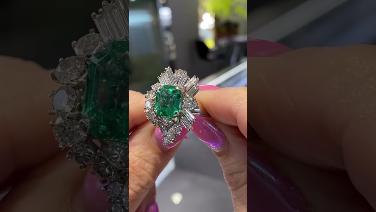 4.5ct Asscher Cut Emerald Cluster Vintage Cocktail Ring