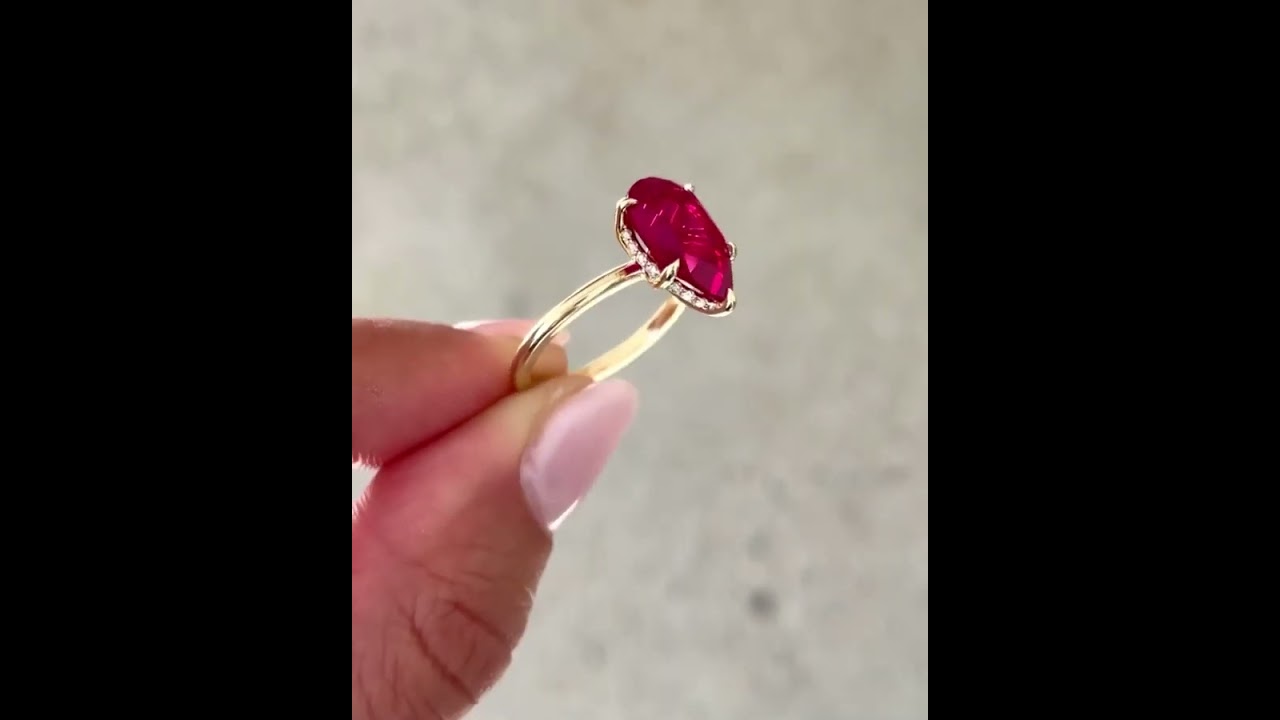 0.85 Carats Teardrop Pear Solitaire Ruby Engagement Ring