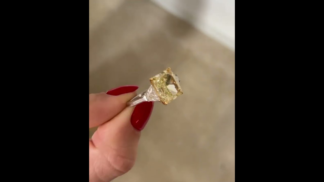2.83 Carats Oval Shaped Fancy Intense Yellow Diamond Ring