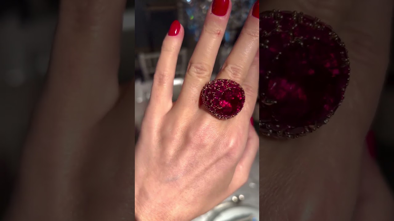 25.86 Carats Cushion Cut Rubellite Hanging Out With Pink Spinels Cocktail Ring