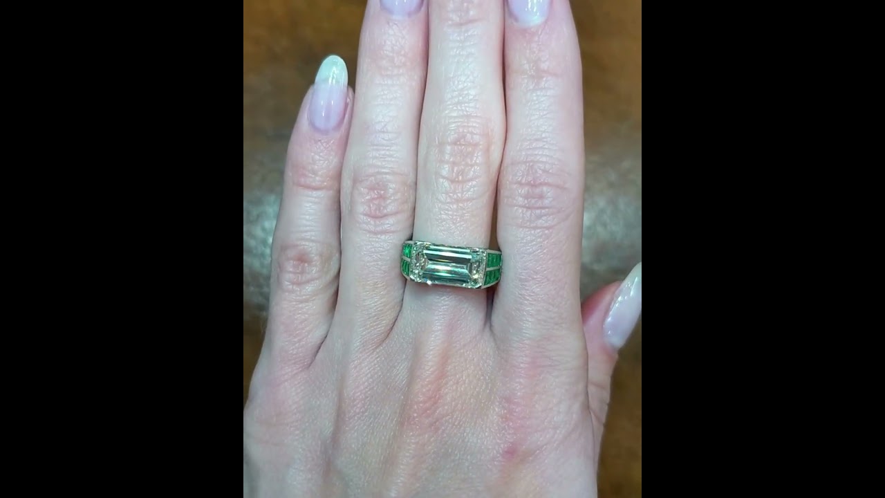 3.58ct Emerald Cut White Sapphire Paved Emeralds Handmade Engagement Ring