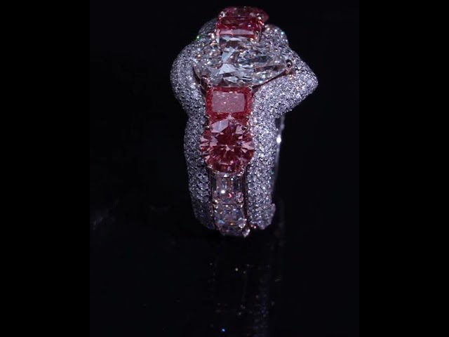 4.5ct Pear Cut White Sapphire With Pink Side Stones Two-Tone Handmade Ring