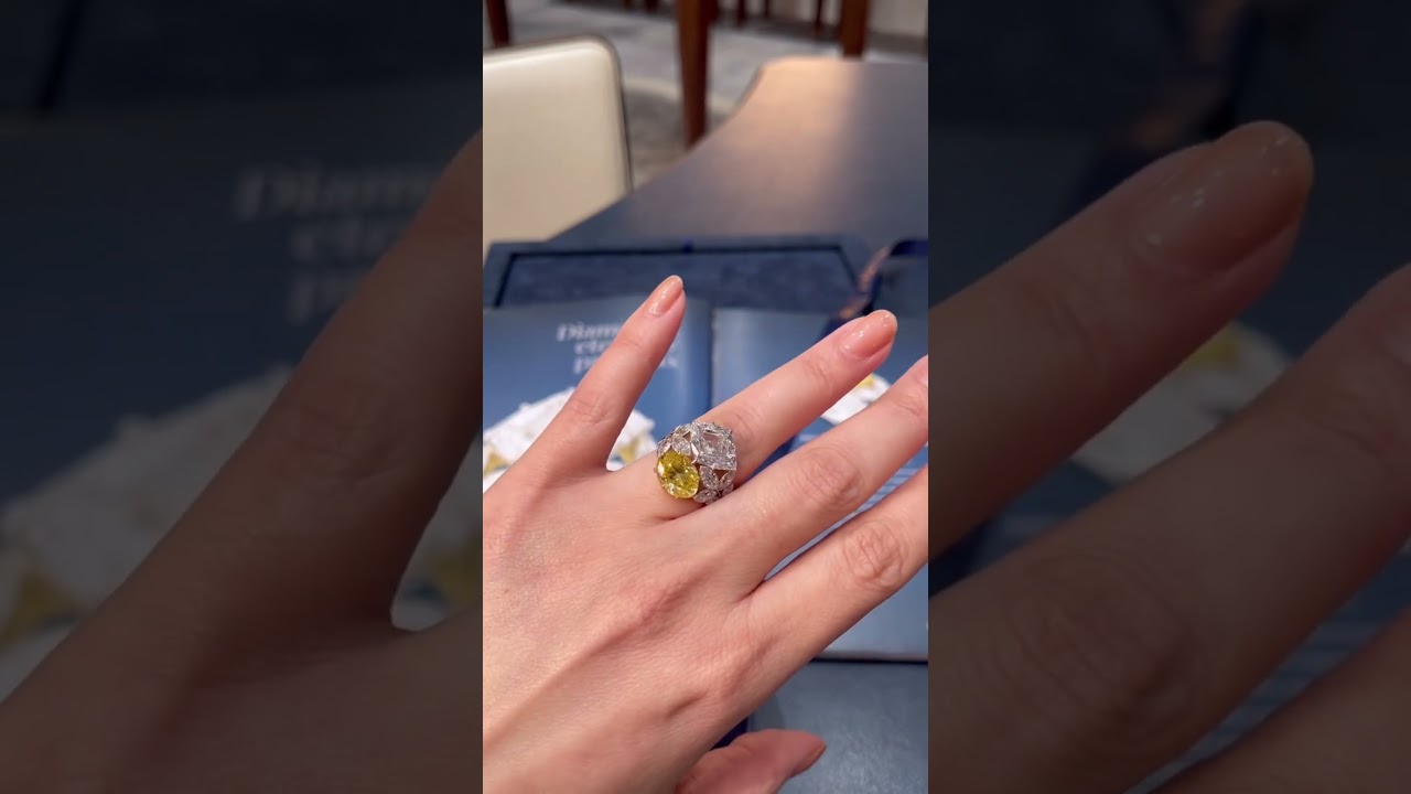 6.99 Carats Yellow And White Color Symmetry Double Stone Diamonds Ring