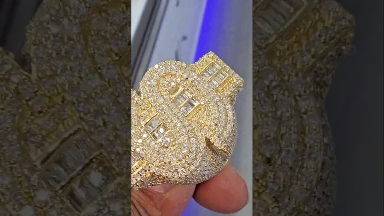 Diamond Dollar Sign Design Sterling Silver Plated Yellow Gold Handmade Ring