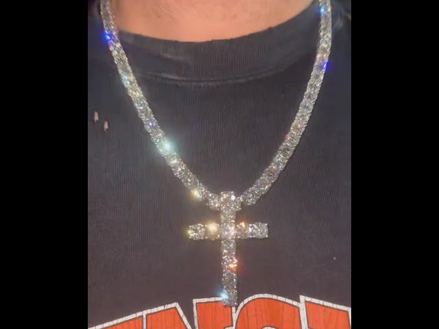 Round Cut 1ct Each Tennis Chain With Cross Pendant Handmade Necklace
