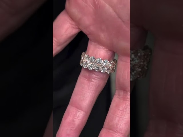 Two-Row Round Cut White Sapphire Rose Gold Handmade Men's Eternity Ring